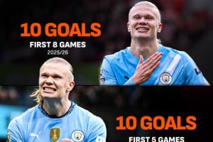 哈蘭德本場比賽的第1個進球幫助他本賽季的聯(lián)賽進球達到了10個,成功上雙,而據(jù)統(tǒng)計,能夠在英超前8輪比賽中實現(xiàn)進球上雙的球員只有一位,正是哈蘭德。