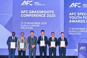 北京時間11月11日,2025年亞足聯(lián)草根足球大會及“2025亞足聯(lián)草根足球特殊貢獻獎”頒獎儀式在馬來西亞吉隆坡隆重召開。由中國足球協(xié)會推薦的譚杰榮獲“2025亞足聯(lián)最佳草根足球領(lǐng)導者獎”,青苗聯(lián)賽摘得“2025亞足聯(lián)草根足球最佳賽事獎”,為中國草根足球贏得國際贊譽。