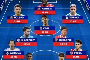 后衛(wèi):卡雷拉斯(皇馬,5000萬(wàn)歐)、莫斯克拉(阿森納,3500萬(wàn)歐)、阿森西奧(皇馬,3000萬(wàn)歐)、普比爾(馬競(jìng),1600萬(wàn)歐)