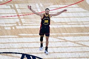 體育資訊11月13日訊 勇士客戰(zhàn)馬刺,第三節(jié)庫(kù)里單節(jié)9分鐘狂轟22分。
