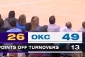 截至發(fā)稿,雷霆領(lǐng)先湖人23分,其中利用失誤得分高達(dá)13分,而湖人則掛零。
