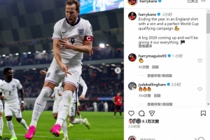 凱恩社媒曬出慶祝進(jìn)球的照片,并寫道:“以一場勝利和完美的世預(yù)賽為今年的國家隊征程收官,重要的2026年即將到來,我們將全力以赴?!?/p>