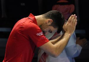 體育資訊10月19日訊 沙特六王大滿貫表演賽季軍賽,德約科維奇在對陣弗里茨的比賽中輸?shù)羰妆P后退賽,38歲德約雙手合十向觀眾致歉。