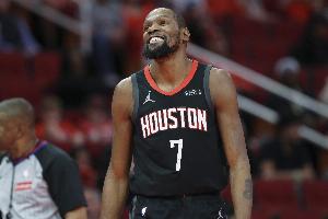 杜蘭特弧頂面對(duì)小瓦格納中投命中,對(duì)此,火箭隊(duì)記Lachard Binkley評(píng)論道:“如果有人在休賽期質(zhì)疑為什么交易來(lái)37歲的凱文·杜蘭特,這就是原因。他是終極終結(jié)者。“