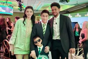 體育資訊10月19日訊 凱爾特人小老板何猷君今日曬出一家人與安芬尼-西蒙斯的合影: