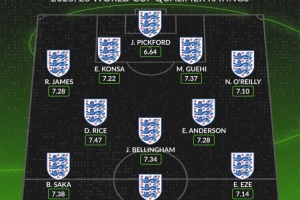 體育資訊11月17日訊 英格蘭在世預賽中8戰(zhàn)全勝,打進22球且0失球,強勢進軍美加墨世界杯。WhoScored評選出英格蘭世預賽最高評分陣容,其中凱恩、賴斯、薩卡評分前三。