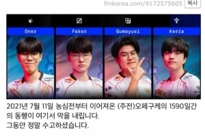 體育資訊11月17日訊 今日T1官宣Gumayusi正式離隊(duì),而韓網(wǎng)有網(wǎng)友發(fā)帖自從2021年7月11號(hào)開始,OFGK組合已經(jīng)一起走過(guò)了1590天。