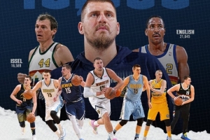 今天掘金官方曬出數(shù)據(jù)顯示,約基奇掘金生涯總得分來到了16590分,超越了伊塞爾(16589),升至隊(duì)史第二,僅次于英格利什(21645)。