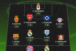 體育資訊11月19日訊 WhoScored根據(jù)球員的場(chǎng)均評(píng)分,列出了本賽季至今五大聯(lián)賽最佳陣容,姆巴佩、凱恩、亞馬爾在列。