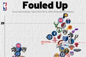 上賽季聯(lián)盟各隊場均罰球數(shù)為19.1次;本賽季該數(shù)據(jù)為22.4次。(數(shù)據(jù)截至今日賽前)