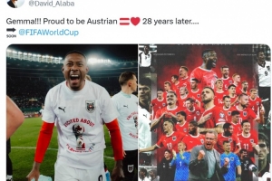 奧地利球員阿拉巴也在社媒曬出慶祝照片以及球隊(duì)晉級(jí)海報(bào),配文寫(xiě)道:“身為奧地利人我感到驕傲,時(shí)隔28年重回世界杯!”