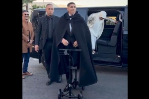 體育資訊11月20日訊 非洲足球聯(lián)合會(huì)頒獎(jiǎng)典禮,據(jù)土耳其媒體Fotoma?報(bào)道,因腳踝受傷,阿什拉夫騎著特制的滑板車出席。