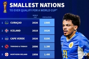 體育資訊11月20日訊 世預(yù)賽當(dāng)前僅剩多個(gè)附加賽名額待定,庫拉索以15.6萬人成為二戰(zhàn)之后晉級(jí)世界杯的人口最少國家,《轉(zhuǎn)會(huì)市場》也統(tǒng)計(jì)了二戰(zhàn)之后晉級(jí)世界杯人口最少的國家前十。