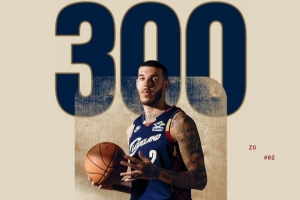 比賽首節(jié),騎士球員朗佐·鮑爾替補(bǔ)出戰(zhàn)。球隊(duì)官方也曬出海報(bào),祝賀鮑爾達(dá)成生涯300場(chǎng)里程碑。
