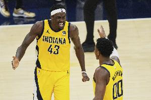 上半場(chǎng)步行者四人得分上雙,分別是馬瑟林16分5板1助、西亞卡姆11分1板3助、赫夫10分4板4助3帽、內(nèi)姆哈德10分5助。
