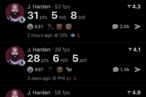 過(guò)去四場(chǎng)比賽,哈登都砍下了25+5+5的數(shù)據(jù),據(jù)數(shù)據(jù)媒體Real Sports,36歲87天的哈登是達(dá)成這一成就的最老后衛(wèi)。
