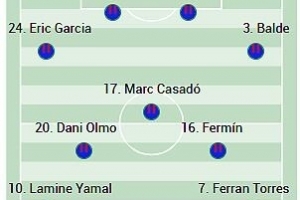 前鋒:亞馬爾、萊萬、費蘭·托雷斯