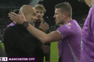 瓜帥點贊瓜迪奧拉賽后找主裁握手交流,瓜帥向主裁豎起大拇指