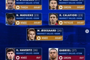 體育資訊11月23日訊 阿森納將在本輪英超焦點(diǎn)戰(zhàn)對陣熱刺,《轉(zhuǎn)會市場》統(tǒng)計(jì)顯示隊(duì)內(nèi)最多可能有8人無法出戰(zhàn)。