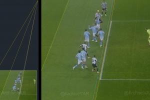 專門研究裁判判罰的機(jī)構(gòu)Archivo VAR針對(duì)此球制作了越位劃線圖,結(jié)果顯示,轉(zhuǎn)播方回放給出的靜止幀中,吉馬良斯明顯處于越位位置。