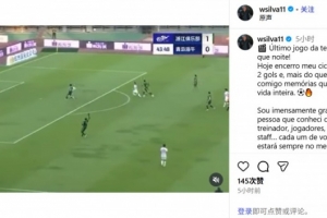 體育資訊11月23日訊 在個(gè)人社媒,海牛外援韋林頓曬出進(jìn)球視頻,疑似告別俱樂(lè)部。