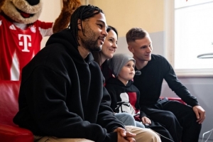 格納布里、基米希與拜仁吉祥物造訪豪納兒童醫(yī)院的腫瘤病房,看望患病兒童,為孩子們帶去歡樂,拜仁社媒曬出相關(guān)照片,記錄這溫馨的一天。
