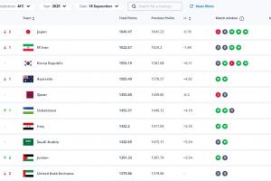 FIFA排名亞洲前十: