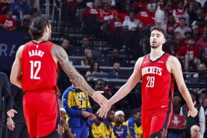明天上午7點半,NBA揭幕戰(zhàn),火箭將在客場對陣衛(wèi)冕冠軍雷霆?;鸺夷粦?zhàn)首發(fā)是:阿門、杜蘭特、小賈巴里-史密斯、申京和亞當(dāng)斯。