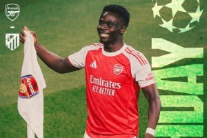 賽前,阿森納官方曬出海報,為本場比賽預熱。薩卡單人出鏡,海報左上角為對陣雙方隊徽,右上角為歐冠標志。