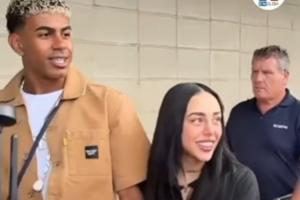 在活動現(xiàn)場,亞馬爾和女友妮基-妮可面對媒體的鏡頭秀起了恩愛,兩人顯得非常開心和輕松。