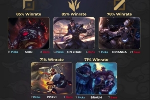 體育資訊10月22日訊 外媒統(tǒng)計S15全球總決賽至今為止各位置勝率最高英雄,具體如下: