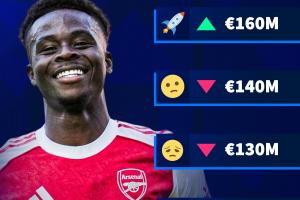 德轉(zhuǎn)給出了薩卡身價(jià)變動(dòng)的四個(gè)可能選項(xiàng),分別是1.6億歐、1.4億歐、1.3億歐和1.2億歐。目前24歲的薩卡德轉(zhuǎn)身價(jià)為1.5億歐元,這也意味著本次薩卡的身價(jià)一定會(huì)迎來變化。