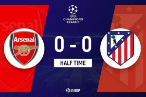 上半場傷停補時1分鐘,半場結束,阿森納暫0-0馬競。