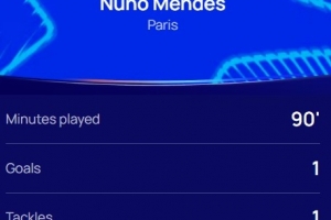 本場(chǎng)比賽努諾-門(mén)德斯發(fā)揮出色,傳射建功,7次搶回球權(quán),跑動(dòng)距離9.6km,賽后他也當(dāng)選歐冠官方評(píng)選出的本場(chǎng)最佳球員。