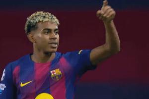 亞馬爾本場(chǎng)第68分鐘主罰點(diǎn)球命中,之后亞馬爾慶祝時(shí)向看臺(tái)做出了飛吻,亞馬爾的女友妮基-妮可本場(chǎng)在看臺(tái)觀看比賽。