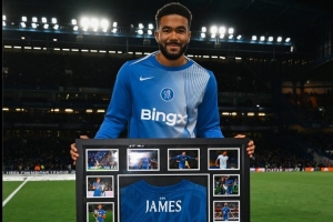 里斯-詹姆斯在本場(chǎng)比賽達(dá)成切爾西生涯200場(chǎng)里程碑,他在賽前也展示了俱樂(lè)部為其贈(zèng)送的紀(jì)念相框,主體為印有200字樣的他本人的球衣,周邊則是包括捧得世俱杯和歐冠在內(nèi)的高光時(shí)刻。