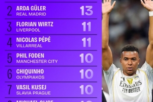 體育資訊10月23日訊 Squawka統(tǒng)計了本賽季歐冠目前為止的創(chuàng)造機會排行榜,姆巴佩位列第一,隊友居萊爾第二,維爾茨第三。